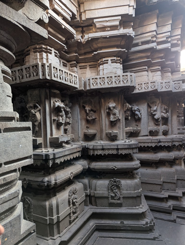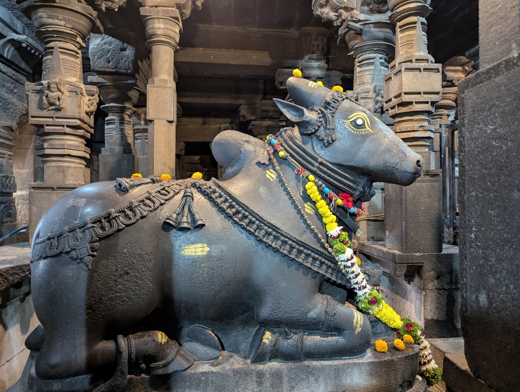 Bhuleshwar, a pretty old stone temple located on a driving distance from Kothrud, Pune. It’s an architectural phenomena one must see. Completely carved out of black stones. The Bhuleshwar Temple is a Hindu temple of Shiva, situated around 45 kilometres from Pune and 10 km from Pune-Solapur highway from Yawat in Maharashtra, India. The temple is situated on a hill and was built in the 8th century. There are classical carvings on the walls. It has been declared as a protected monument. This temple is said to have been built in the 1200 century by King Krishnadevaraya.The temple figurines were attacked and disfigured by the Mughals (Source Wikipedia). In front of the Shiva idol, gabhara, there sits the largest Nandi I have ever seen. Recent pictures below.