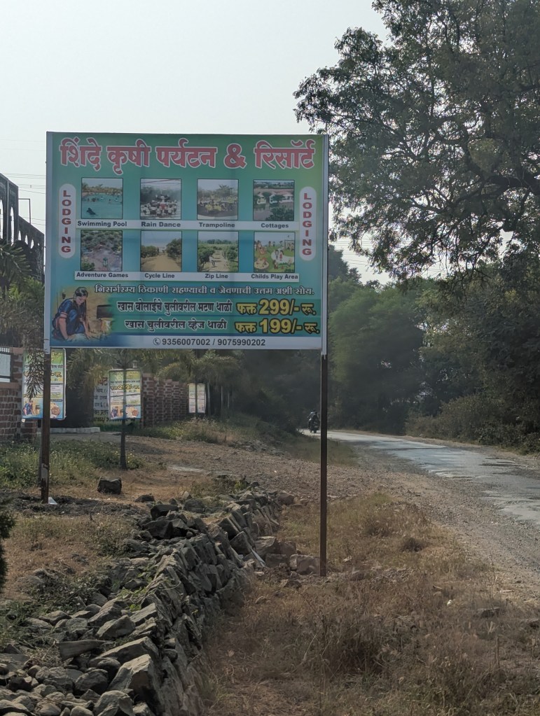 Not aware or made aware what it is, we all thought it’s some place where one would get to see many peacocks. This was the final leg on our trip. So we head off. It was way past our lunch time and we were also looking for a place to eat. When reached in the village after asking few villagers we came to an understanding that there is no such one place to see peacocks. Whereas, Chincholi Morachi is a village near Pune-Ahmednagar Highway about 55 km from Pune. It is known for its peafowl. They seem to be in abundance all around and can be seen early in the daytime or later in the evenings. And we were bang in the between, afternoon 2pm or so, so didn’t see any. As we were so deep in the village there was nothing around as an option to eat. However there are few farmsteads who serve lunches when preordered which we only came to know about. We searched around, asked few places, some said it will take an hour to prepare, some couldn’t take our order as about to being closed. Fortunately, we hit a place (Shinde Krushi Paryatan and Resort – image below) where the owner was happy to take us in with a wait of 30mins which was certainly acceptable and appreciable to us.